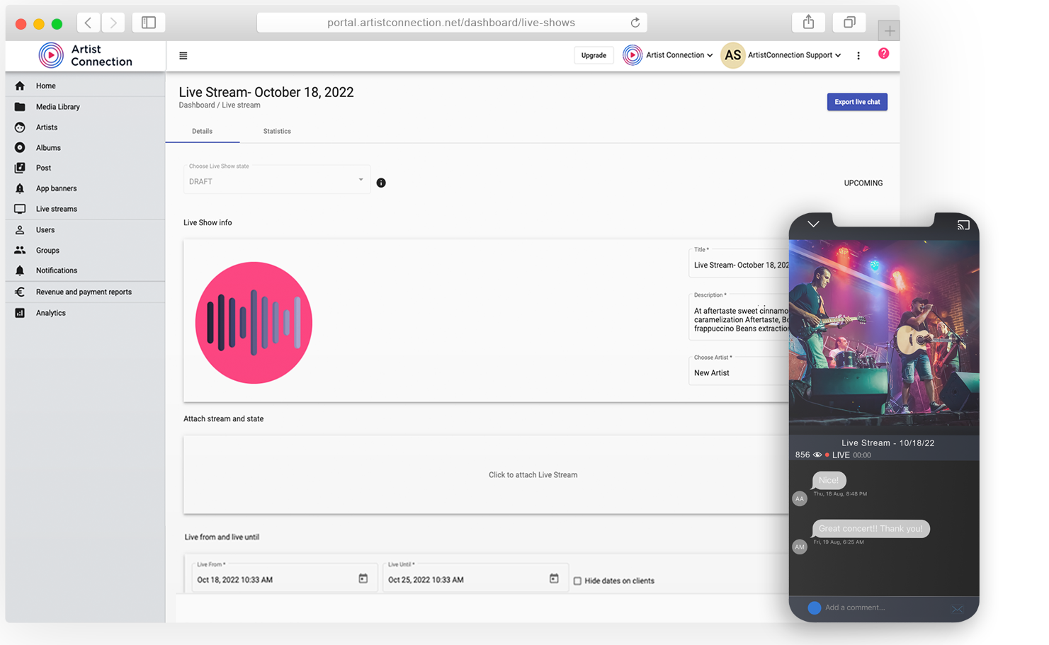 Use Artist Connection not only for Live Events but to provide your audience with a subscription to your music catalog.